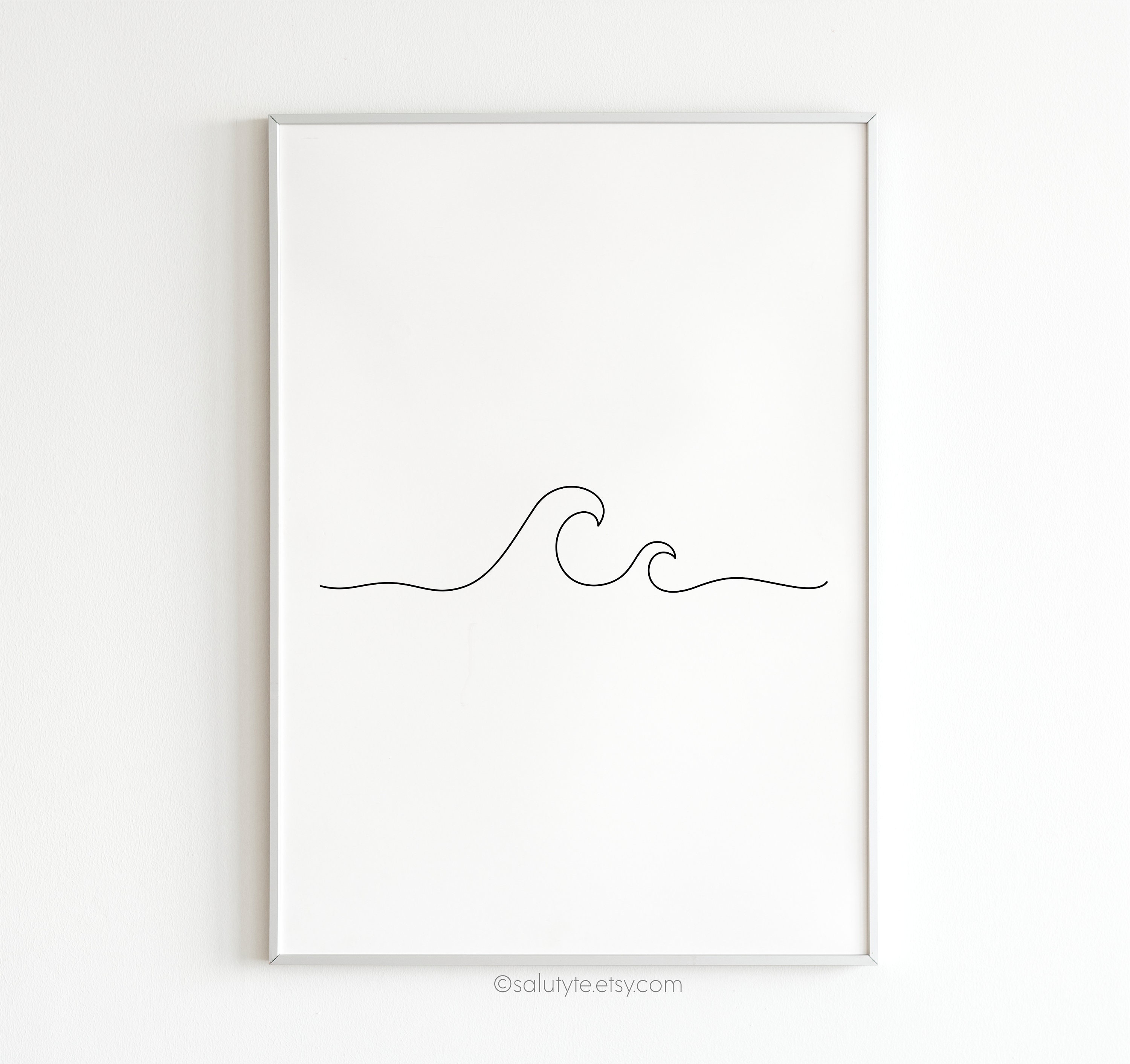 Sea Wave One Line Art Ocean Wave Line Drawing Nature Print Etsy
