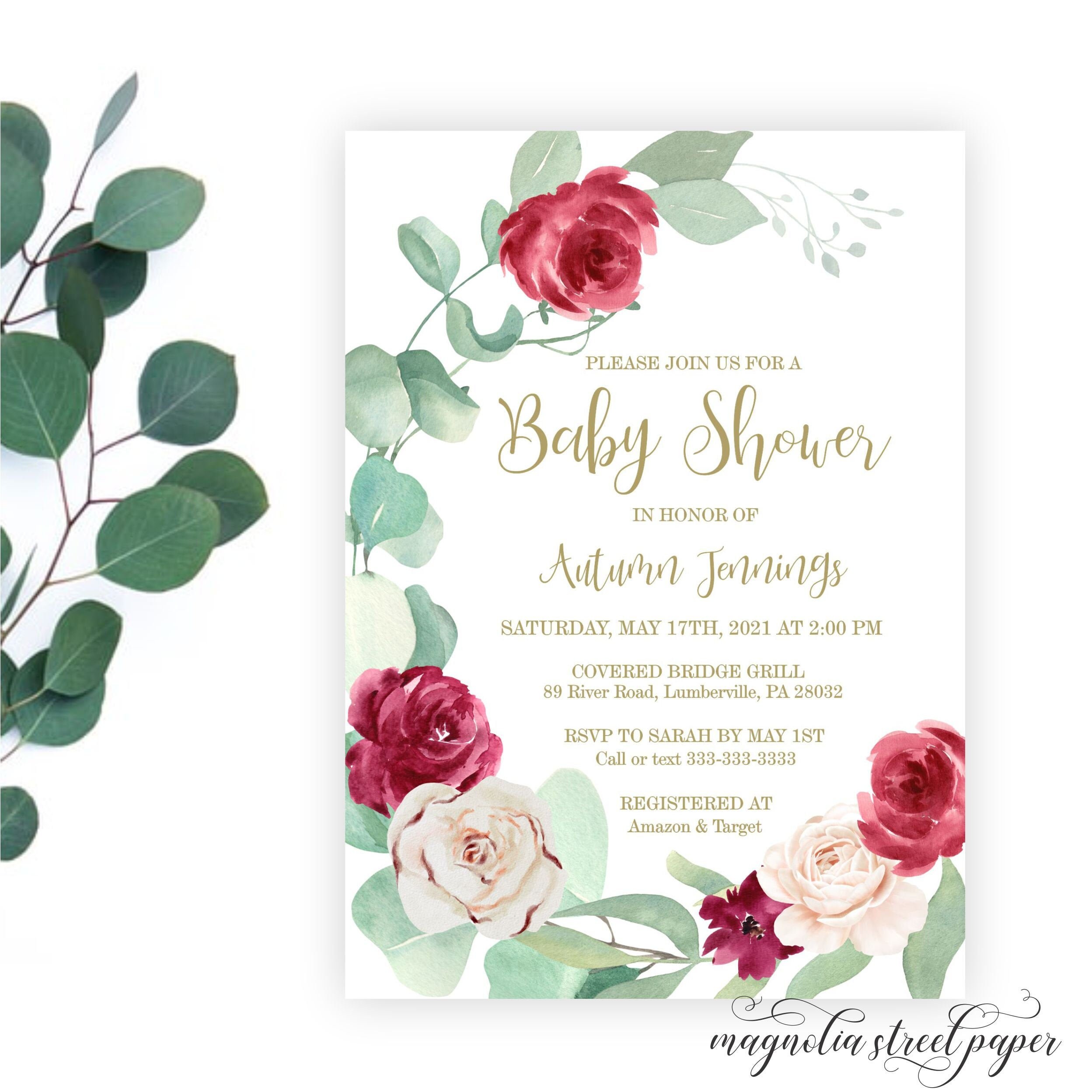 Burgundy Baby Shower Invitation Red Wine And Beige Baby Girl Etsy